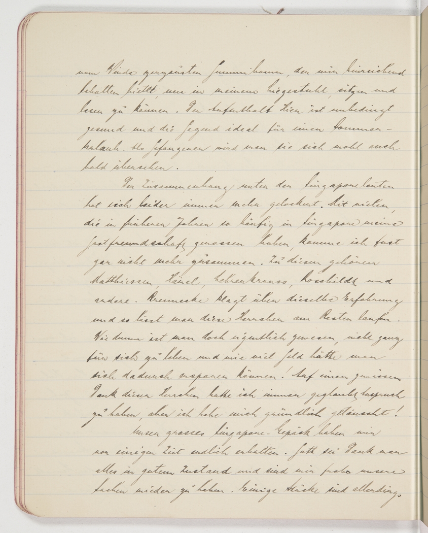 Unfortunately, the cohesion among the Singapore people has disappeared more and more. Many of those who in earlier years so often enjoyed my hospitality in Singapore I now hardly see anymore. They include Matthiessen, Häuel, Lehrenkrauss, Rotschildt, etc. Brennecke lamented a similar experience, so I guess it’s best to forget those people. How stupid really not to have kept to ourselves and how much money we could have saved! I always thought I could rely on some gratitude from those people, but how wrong my assumption has been!