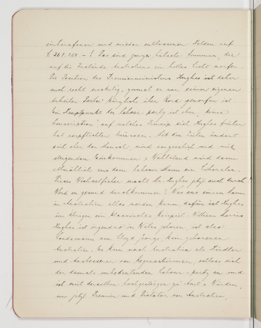 <p>[Page 19]</p><p>and having to demob them again ran to £368,250! These are substantial amounts and cast a dubious light on the Australian state of affairs. The position of Premier Hughes is rather shaky as a result, especially after his own Labor Party recently toppled him. A major platform of the Labor Party is the principle of “no conscription” to which Hughes once had to commit. But man changes as time goes by and becomes forgetful, and rising income and wealth gradually turn a Labor man into a Liberal. It’s these vicissitudes that Mr Hughes is now experiencing! Will he come out of it in good shape? Hughes, by the way, is a classic example of what can become of a man in Australia. William Morris Hughes was born somewhere in Wales and is thus a compatriot of Lloyd George, not a true-blue Australian. He came to Australia as a trader and repairer of umbrellas and joined the then-insignificant Labor Party; both he and the party rose to office and status, and so he is now the Premier and dictator of Australia,</p>