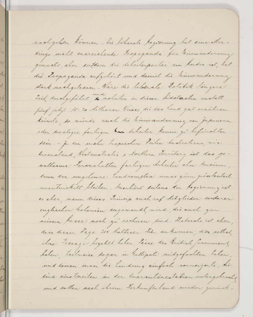 <p>[Page 32]</p><p>damage to their health. The Liberal government had a campaign going for [white] immigration, albeit not an adequate one, but since the Labor Party is in office, the campaign has stopped altogether and [white] immigration has decreased significantly. Had the Liberal policy been applied a while longer, and if those southern states had a population of 15-20 million whites by now (which the country could easily feed) instead of five, even the immigration of Japanese and other coloured workers would be no problem. In the more tropical parts of Australia, such as Queensland, Western Australia and Northern Territory, the banning of coloured workers makes no sense, because the vast mass of land has to remain largely undeveloped. But it’s downright outrageous when the government applies the policy also to members of other British colonies who clearly belong to the white race. Fact is that recently 214 Maltese people arrived who had paid for their own passage, have British passports and in part even fought in Gallipoli but were refused entry. They are now in quarantine and must eventually return to their country,</p>