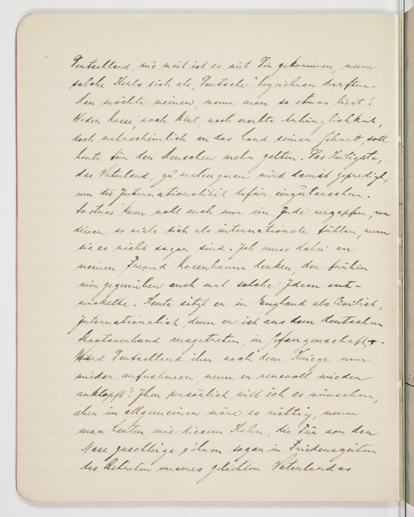 <p>[Page 35]</p><p>Germany, how far have you fallen if such rogues can call themselves "Germans". One could cry just reading such words! Neither race, nor blood, nor inherited affiliation - most likely to the country of birth - is to be of any value anymore. That translates into negating one's homeland, the most sacred good, in favour of internationalism. Only a Jew could utter such rubbish, since so many of them feel like internationals, if they not already are. This makes me think of my old friend Rosenbaum; he used to dream up such theories. Today he is a civilian prisoner in England, an internationalist, after renouncing the German confederation. Would Germany take him back if he came ruefully knocking on the door after the war? For his personal sake I hope so, but generally I think it proper to slam the door in the face of people like Kahn, and ban them from entering our beloved homeland even</p>