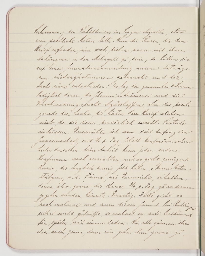 <p>[Page 63]</p><p>improving camp matters, the motives being purely factual. If the gentlemen who launched the letter were so confident of getting a majority on their side, all they had to do was put our proposals to a vote and have them defeated, and the matter would have ended there. The 3 gentlemen [Burkard, Wehrs and Hering] simply wanted to put an end to the secretiveness and the spending frenzy, but that's exactly what the men behind the letter were afraid of, as they might have lost a few personal advantages. Dornmähle has been managing the cooperative since its inception, on a daily salary of 3s 6p. Any businessman could have done the job, and there are plenty of men who have very little money and get no subsidies from a company, as Dornmähle does, and would have jumped at the chance to earn 3s 6p a day. There are other such cases and while this is not true for Berblingen himself, he surely hopes to get something out of it, maybe a medal. None of us would begrudge him a medal, we all freely admit</p>