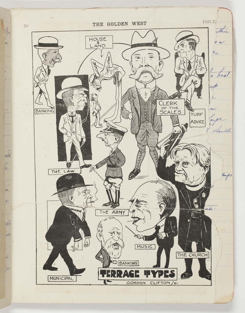 [See image for cartoon entitled "Terrace types" from "The Golden West", 1921.]