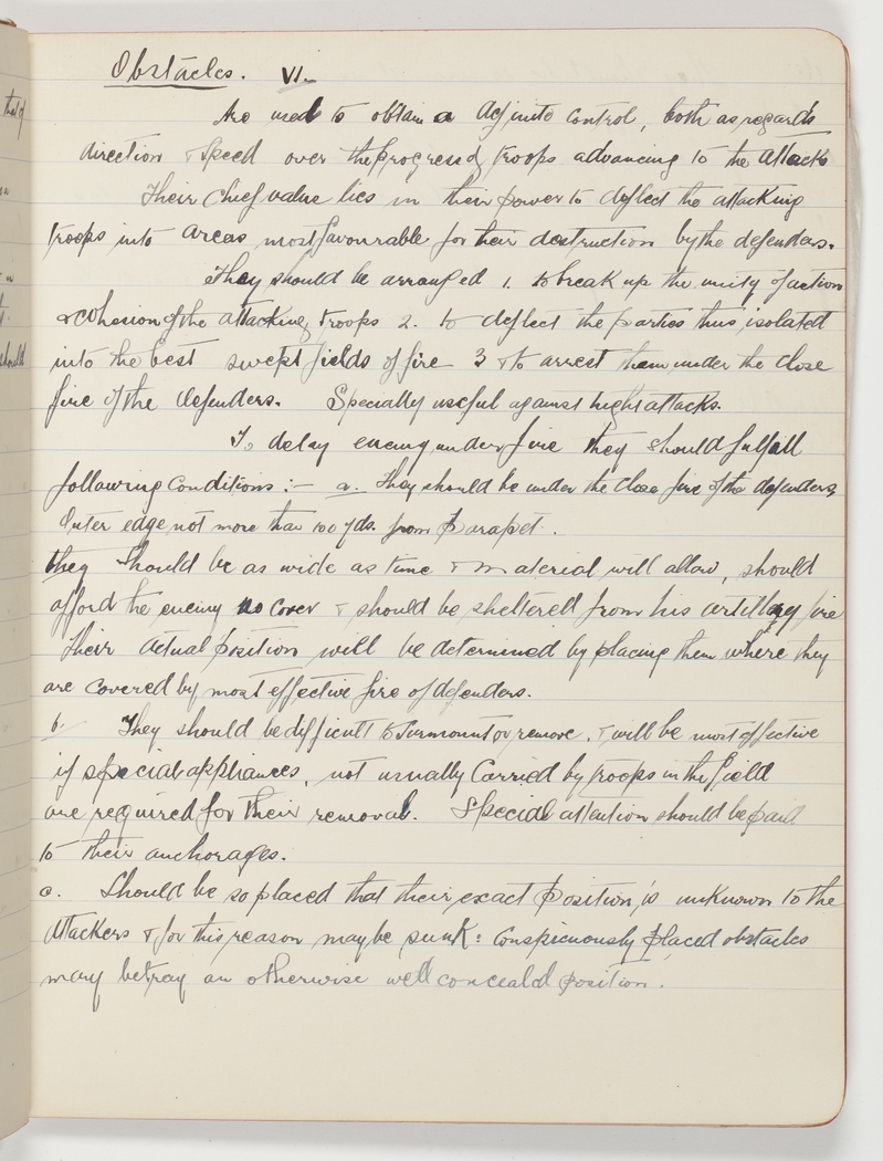 They should be arranged 1. to break up the unity of action & cohesion of the attacking troops, 2. to deflect the parties thus isolated into the best swept fields of fire, 3. & to arrest them under the close fire of the defenders. Specially useful against night attacks.