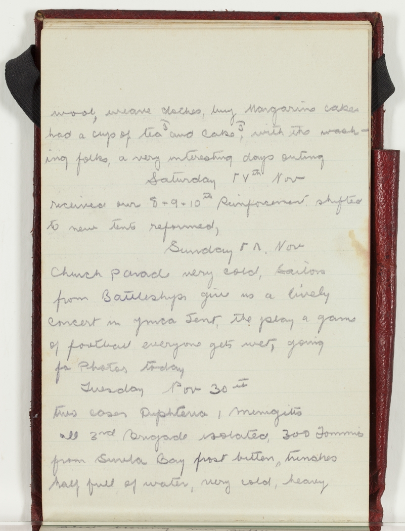 Heavy rain in Gallipoli 30 Tommies drowned 200 Frost bitten, 2 case of Diptheria, camp isolated, off Duty no boots to wear