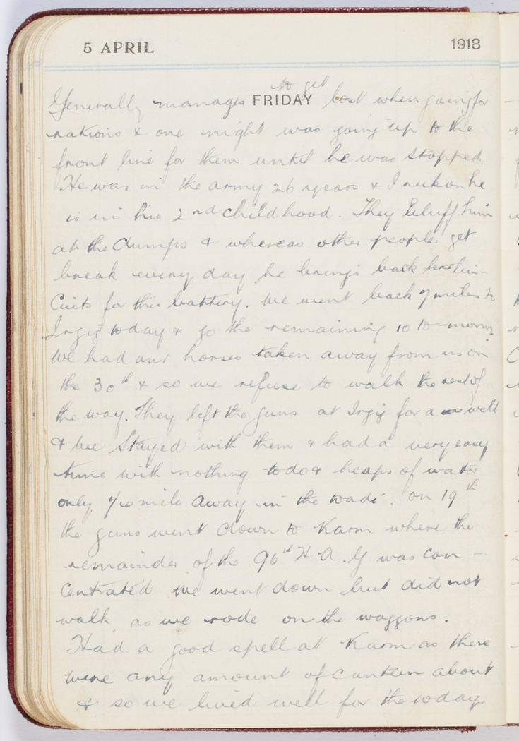 On 19th the guns went down to Karm where the remainder of the 96th H.A.G. [Heavy Artillery Group] was concentrated. We went down but did not walk, as we rode on the waggons.