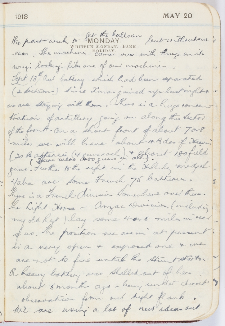 There is a huge concentration of artillery going on along this Sector of the front. On a short front of about 7 or 8 miles we will have about 4 Bdes of Heavier (20 Batteries (4 guns each) & about 180 field guns. (There were about 400 guns in all.)