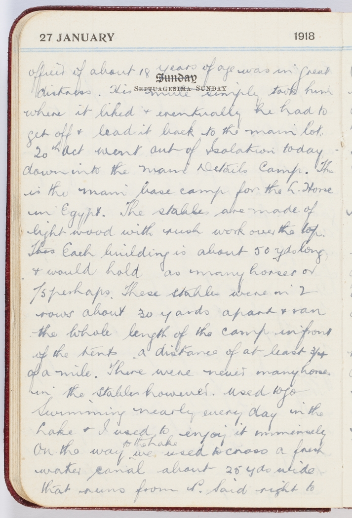 20th Oct went out of Isolation today down into the main Details Camp. This is the main base camp for the L. Horse in Egypt.
