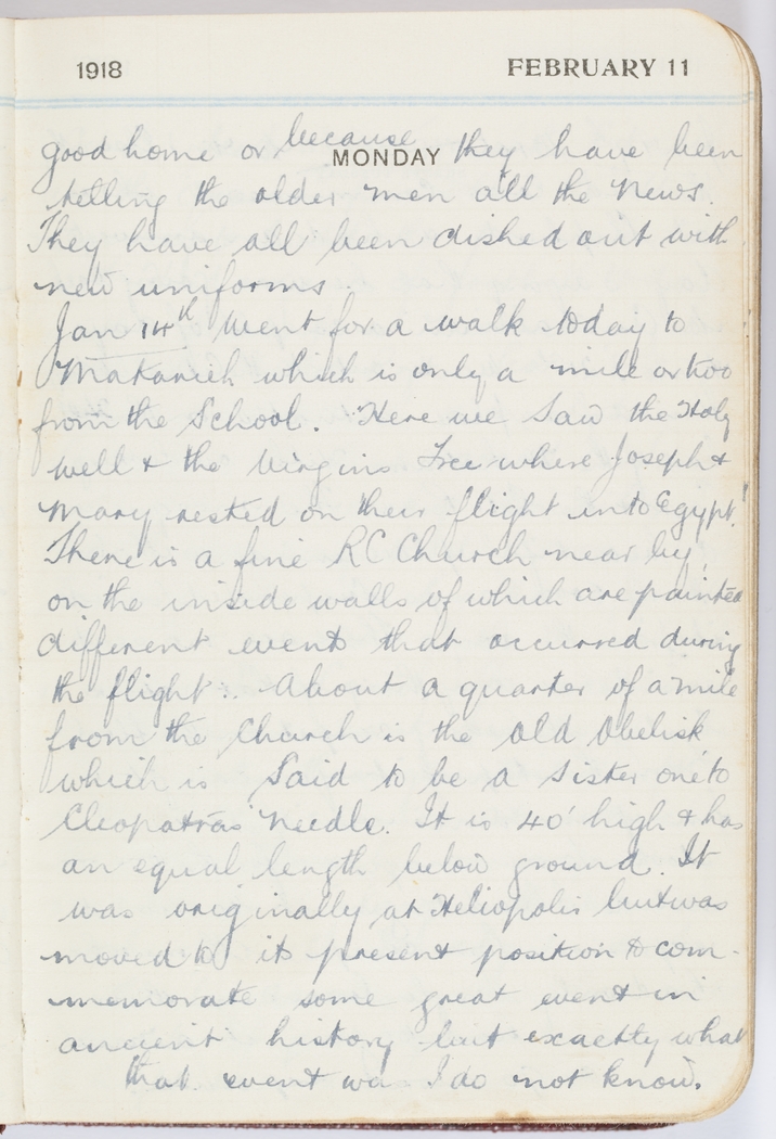 Jan 14th Went for a walk today to Makanich which is only a mile ot two from the School. Here we saw the Holy Well & the Virgins Tree where Joseph & Mary rested on their flight into Egypt.