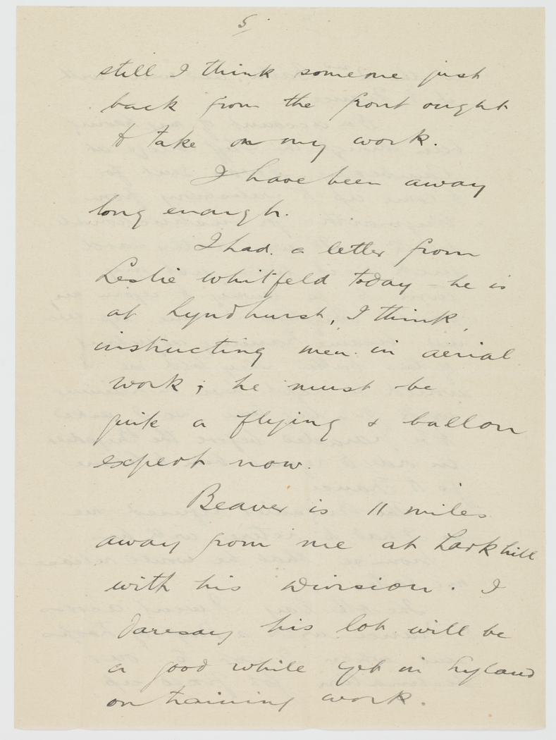 I had a letter from Leslie Whitfield today he is at Lyndhurst, I think instructing men in aerial work, he must be quite a flying & ballon expert now.