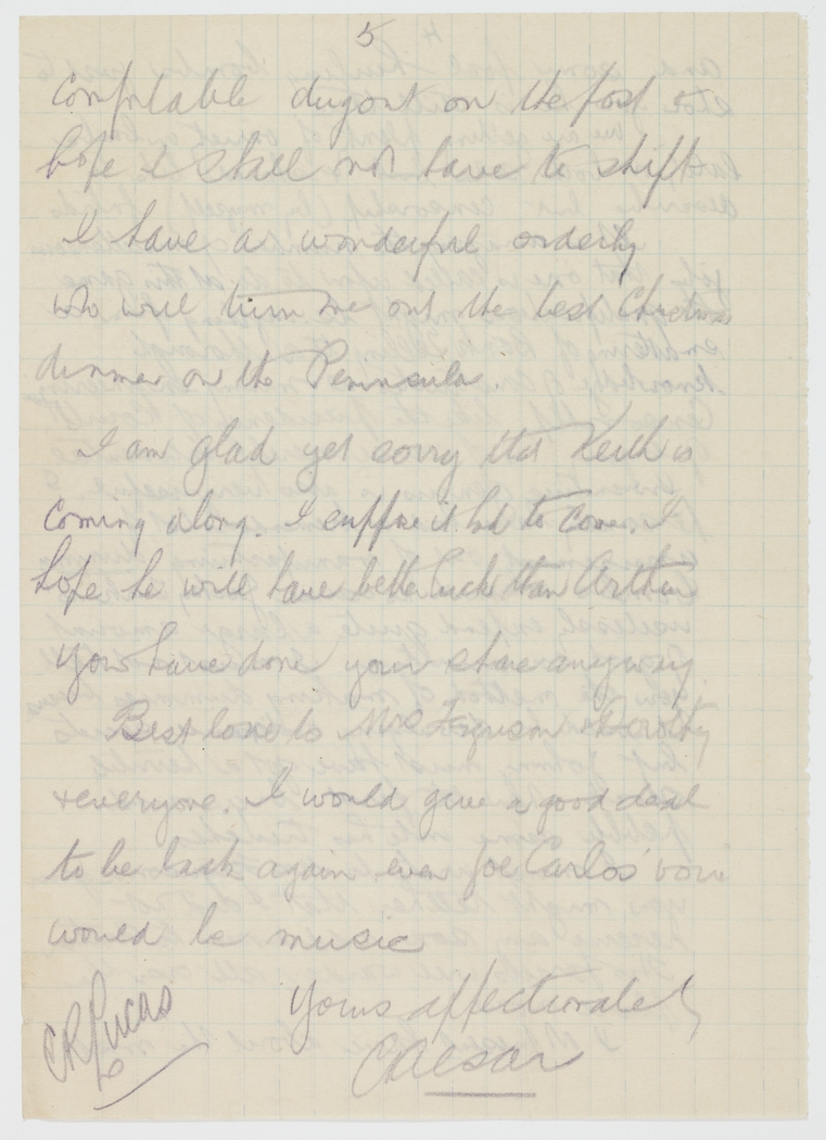 Best love to Mrs Ferguson & Dorothy & everyone. I would give a good deal to be back again even Joe Carlos' voice would be music.