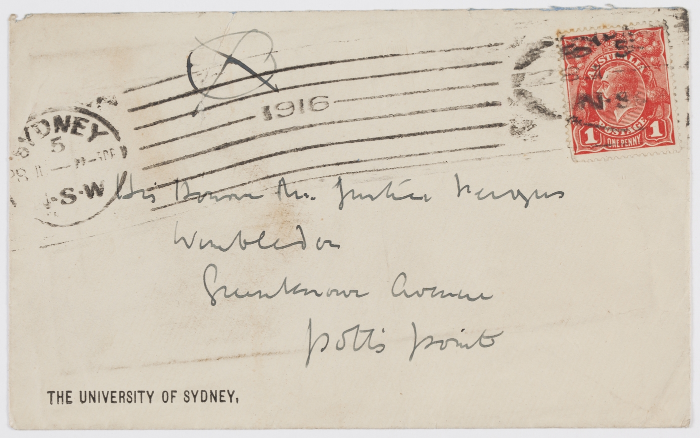 [Envelope marked The University of Sydney. Dated 26 June 1916]His Honour Mr Justice FergusonWimbledonGreenknowe AvenuePotts Point