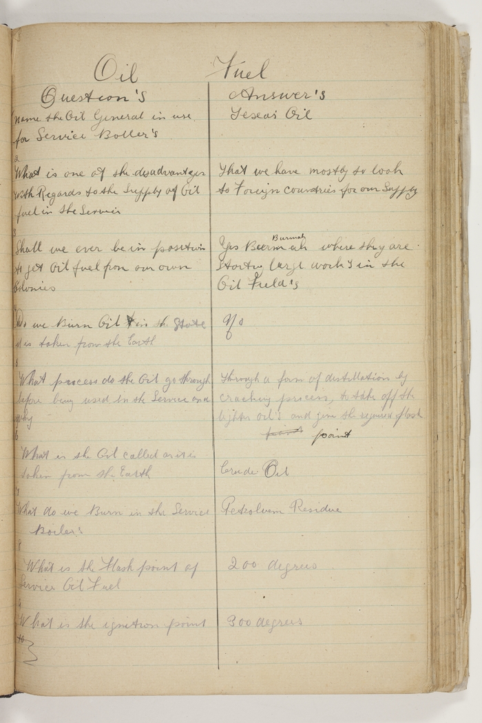 | 3. Shall we ever be in position to get oil fuel from our own Colonies | Yes, Burmah [Burma] where they are starting large works in the Oil Fields |