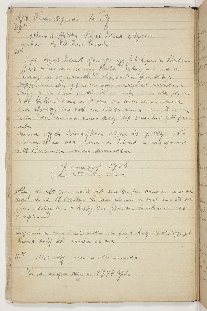 Arrived off the Island of Flores, Azores at 9 AM. 31st. As soon as we had passed the Island we were informed that Bermuda was our destination.