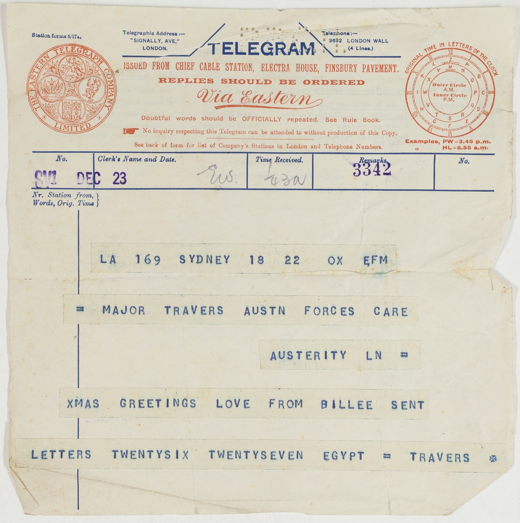 Xmas Greetings Love from Billie sent Letters Twentysix Twentyseven Egypt = Travers