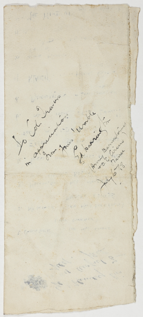 in appreciationFrmYour 'UmbleEd. Warrington(Army Barnstormer & O.C. Circus)FranceJuly 6 7 18.