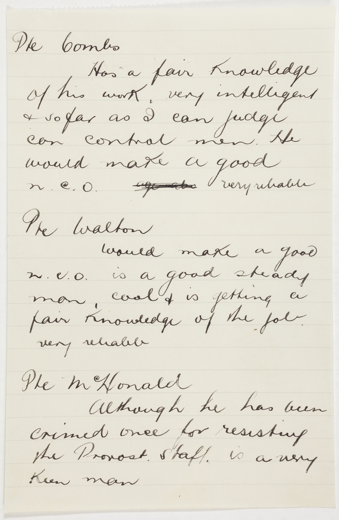 Would make a good N.C.O. is a good steady man, cool & is getting a fair knowledge of the job. very reliable