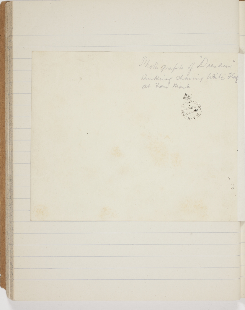 Photograph of "Dresden" sinking showing white flag at Ford [Forward] Mast