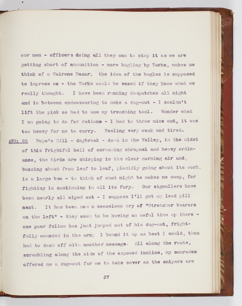 our men – officers doing all they can to stop it as we are getting short of ammunition – more bugling by Turks, makes me think of a Cairene Bazar; the idea of the bugles is supposed to impress us – the Turks would be vexed if they knew what we really thought.