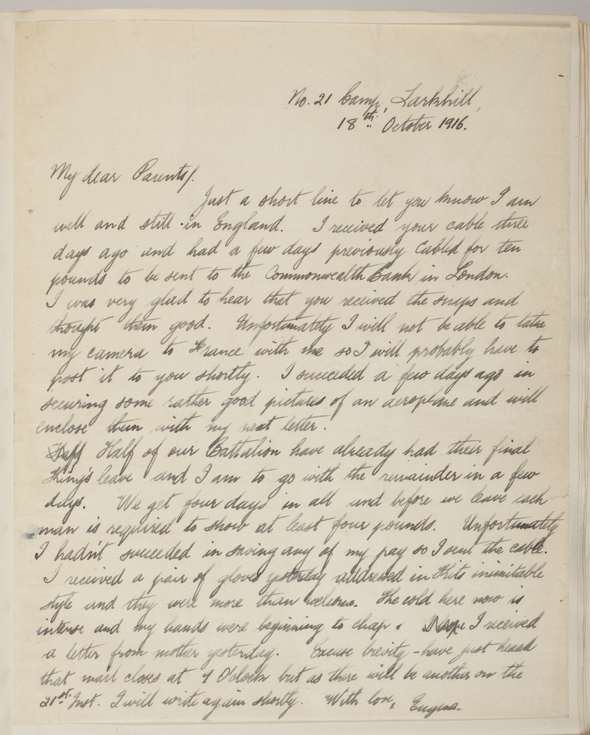 Half of our Battalion have already had their final King's leave and I am to go with the remainder in a few days. We got four days in all and before we leave each man is required to show at least four pounds. Unfortunately I hadn't succeeded in saving any of my pay so I sent the cable.