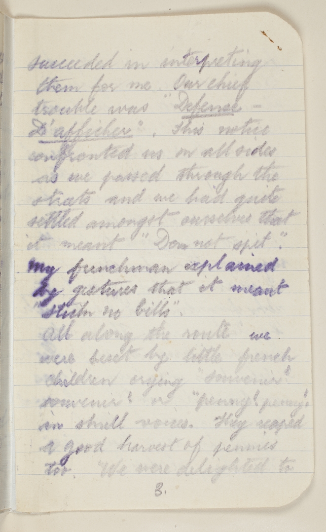 succeeded in interpreting them for me. Our chief trouble was "Defense D'afficher". This