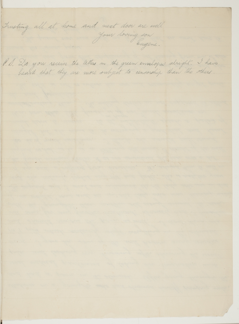P.S. Do you receive the letters in the green envelopes alright. I have heard that they are more subject to censorship than the others.