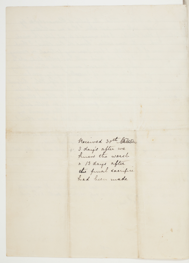 Received 30th October 3 day's after we knew the worst & 13 days after the final sacrifice had been made.