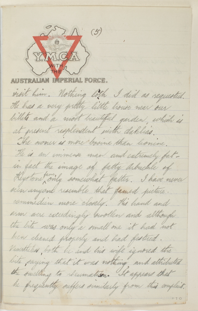 He is an immense man and extremely fat - in fact the image of fatty Arbuckle of Keystone fame only somewhat fatter. I have never seen anyone resemble that famed picture-commedian more closely. His hand and arm were exceedingly swollen and although the bite was only a small one it had not been cleaned properly and had festered. Nevertheless, both he and his wife ignored the bite, saying that it was nothing, and attributed the swelling to rheumatism. It appears that he frequently suffers similarly from this complaint.