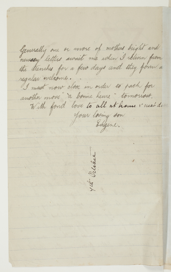 Generally one or more of mothers bright and newsey letters await me when I return from the trenches for a few days and they form a regular welcome.