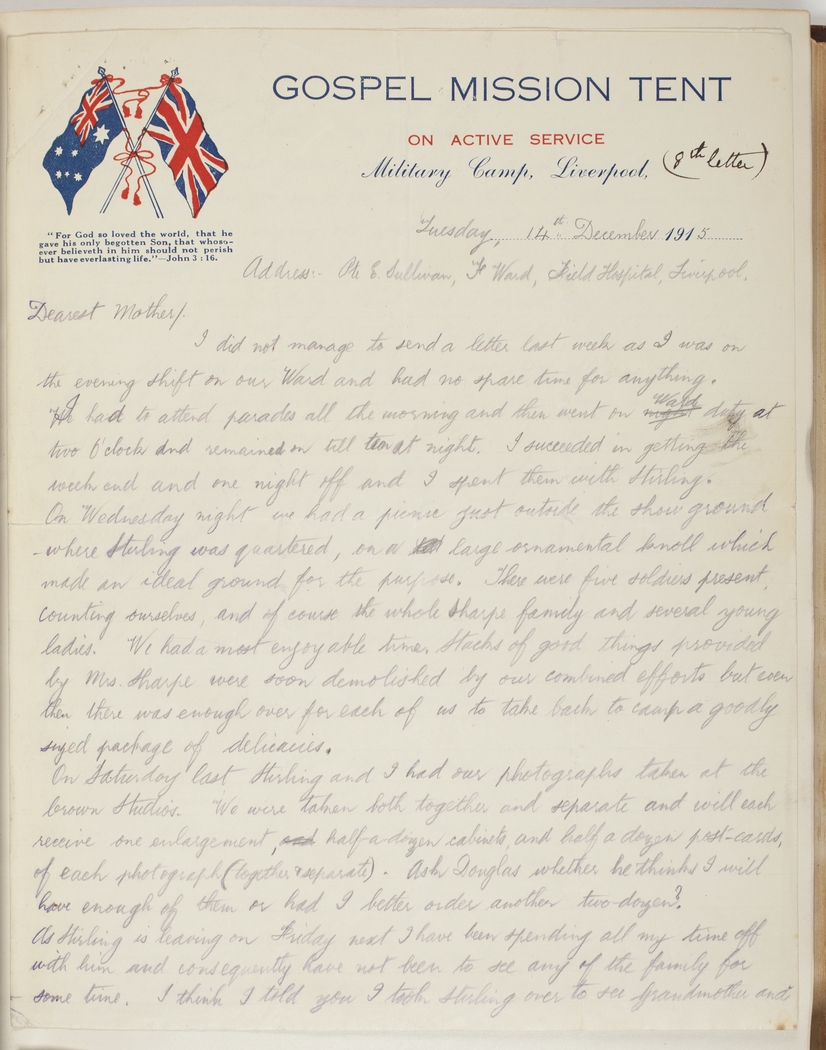 Address:- Pte. E Sullivan, F Ward, Field Hospital, Liverpool.