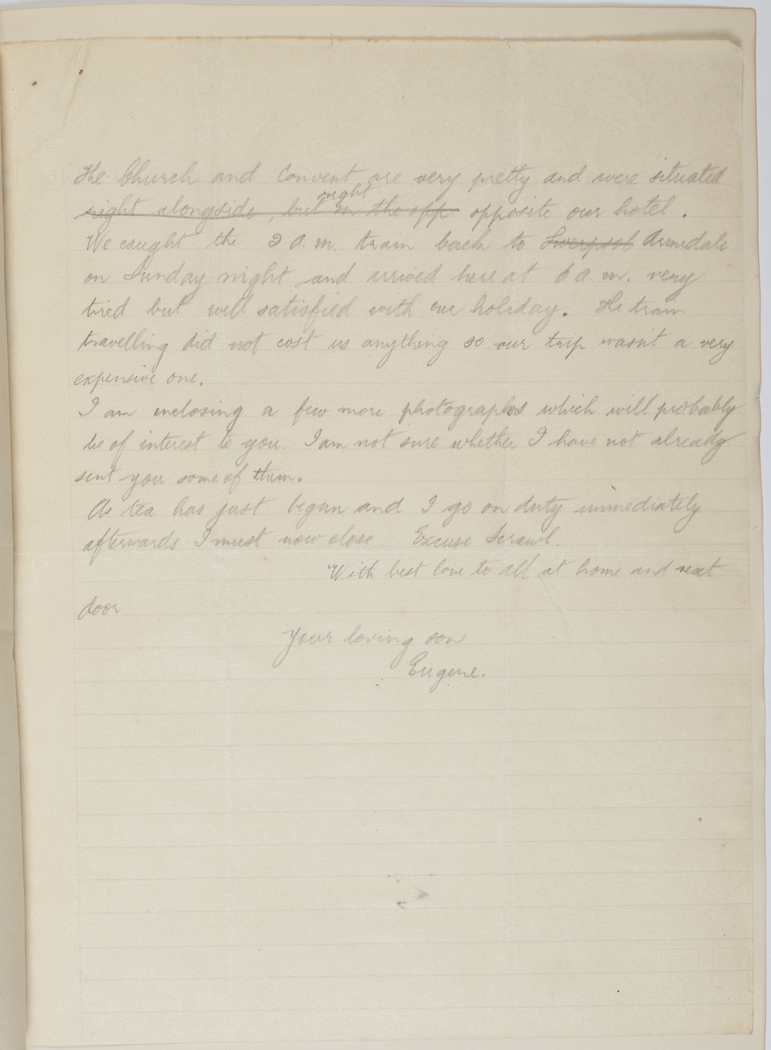 As tea has just begun and I go on duty immediately afterwards I must now close. Excuse scrawl. With best love to all at home and next door