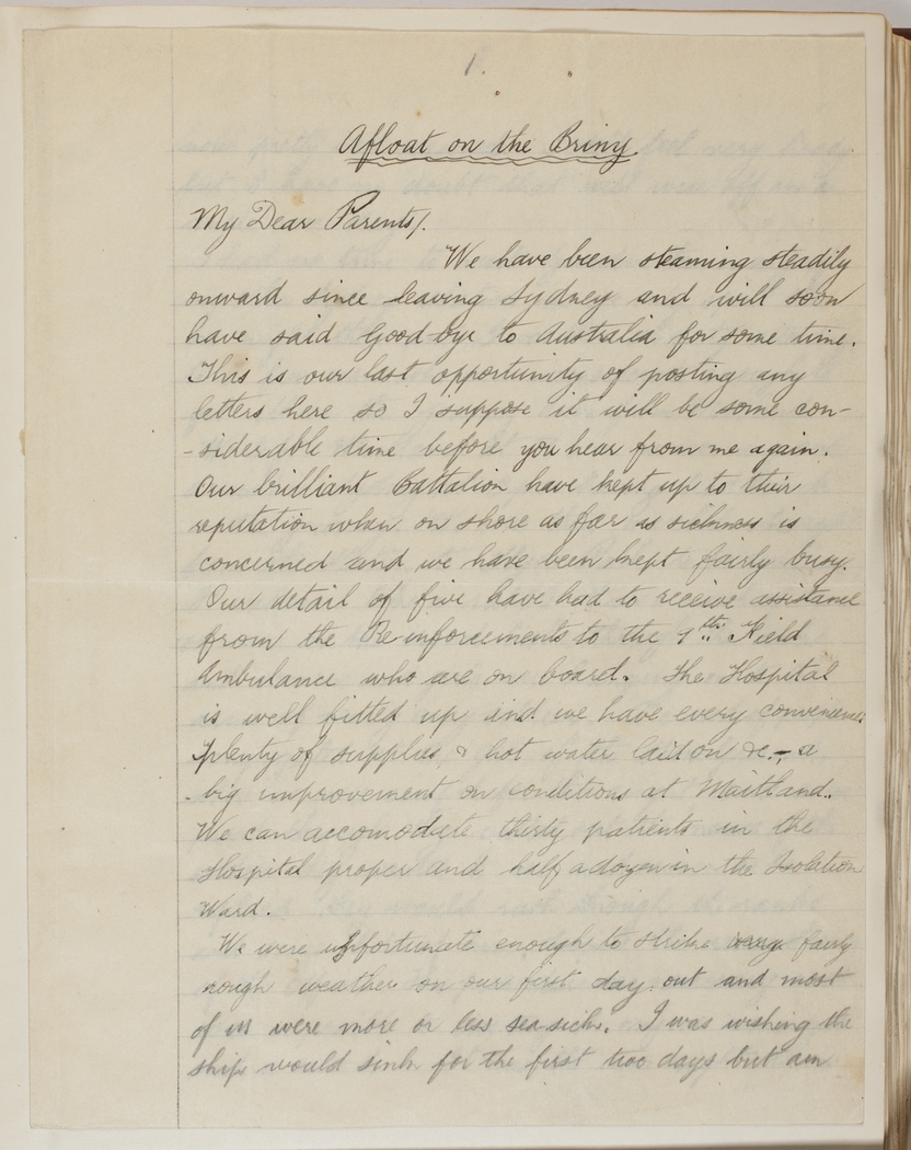 We have been steaming steadily onward since leaving Sydney and will soon have said Good-bye to Australia for some time. This is our last opportunity of posting any letters here, so I suppose it will be some considerable time before you hear from me again.