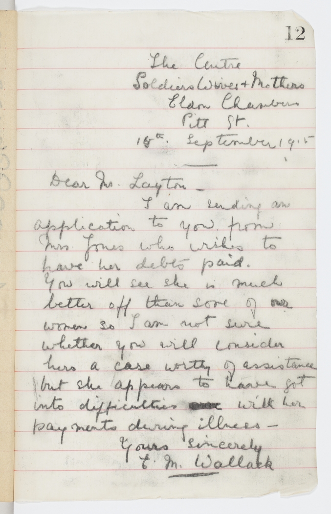 You will see she is much better off than some of our women so I am not sure whether you will consider hers a case worthy of assistance but she appears to have got into difficulties with her payments during illness –