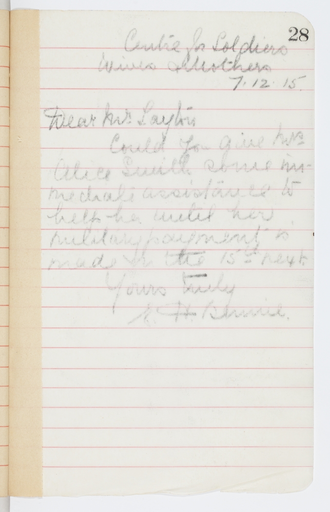 Could you give Mrs. Alice Smith some immediate assistance to help her until her military payment is made on the 15th next.