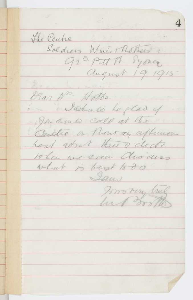 I should be glad if you could call at the Centre on Monday afternoon next about three o'clock when we can discuss what is best to do